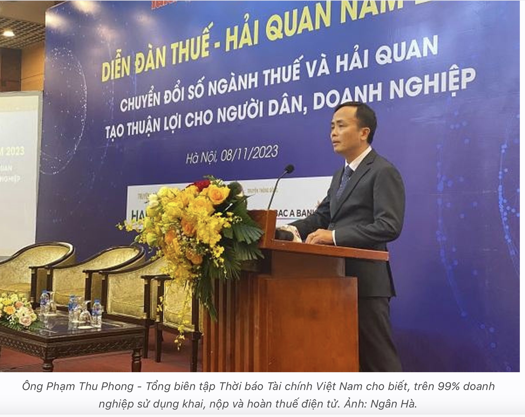 Chia sẻ tại diễn đàn Thuế – hải quan 2023 với chủ đề “Chuyển đổi số ngành thuế và hải quan, tạo thuận lợi cho người dân, doanh nghiệp”, chiều ngày 8/11, ông Phạm Thu Phong – Tổng biên tập Thời báo Tài chính Việt Nam cho rằng, chuyển đổi số trong lĩnh vực tài chính là một trong những yếu tố then chốt cho chuyển đổi số quốc gia.